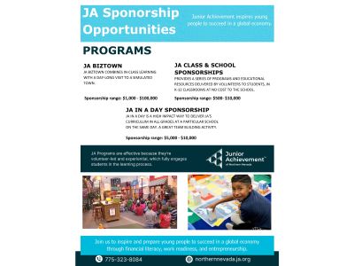 Donating to Junior Achievement of Northern Nevada empowers local youth by funding hands-on educational programs that build financial literacy, work readiness, and entrepreneurial skills for K–12 students. Each year, around 13,000 students across the region benefit from engaging, real-world learning experiences and career exploration events led by community volunteers, business professionals, and educators. These programs foster confidence, teach essential life and job skills, and inspire students from all backgrounds to envision a successful future. Your support helps build a stronger local workforce, promotes economic equity, and creates lasting connections between students and their community. By investing in Junior Achievement, you are investing in the next generation of leaders, entrepreneurs, and informed citizens—ultimately strengthening the economic and social fabric of Northern Nevada.